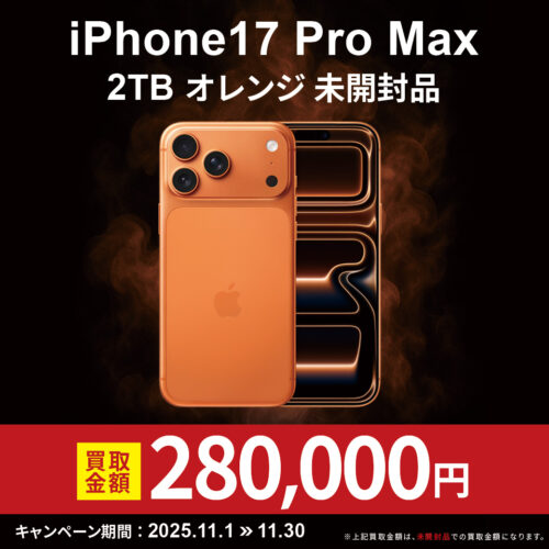 ダイヤモンドセブン心斎橋店ではiPhone17 Pro Max 2TB 未開封品を『期間限定で買取金額28万円』で高価買取を行っております。
