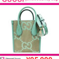 - フロントにブラックレザーの「GUCCI」ラベルを配置。GGパターンが全面に施され、クラシックでありながらモダンな印象。